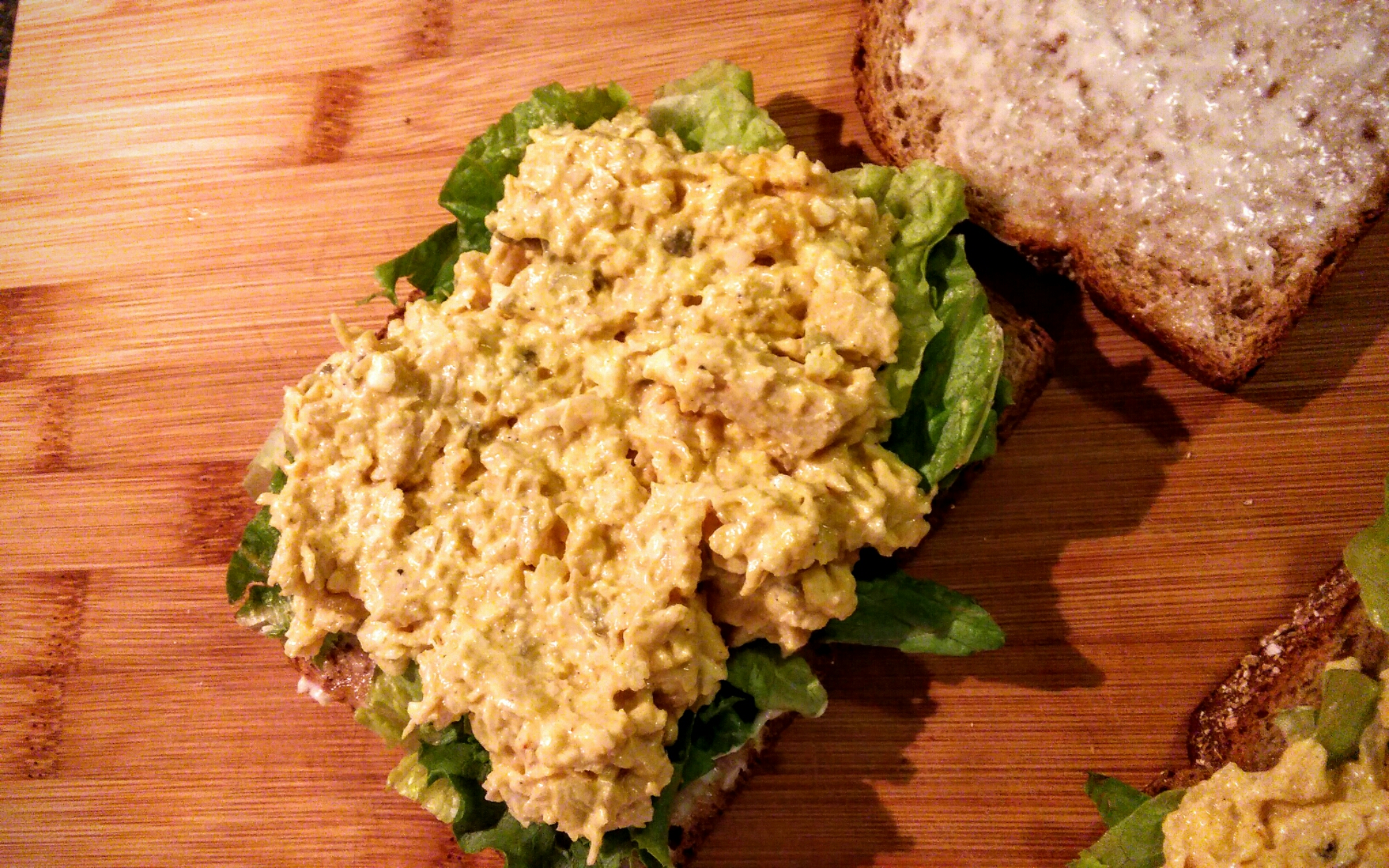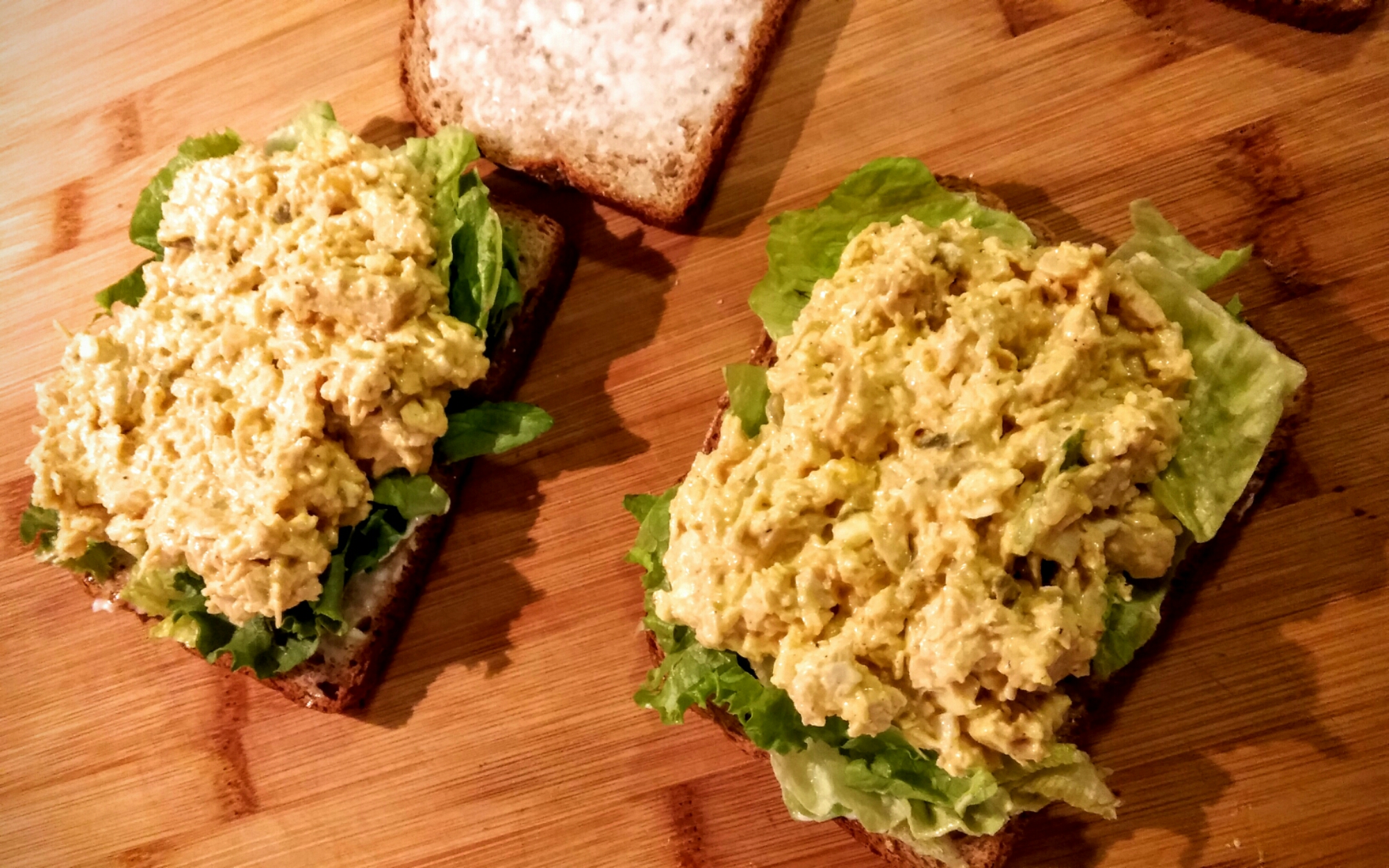 Spread ΒΌ of the chicken salad over each, and top with remaining toast slices.