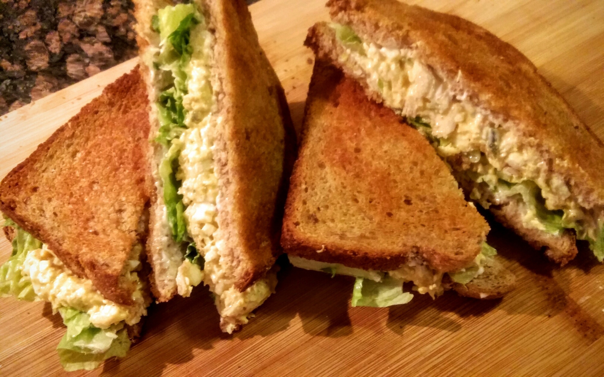 Spread ΒΌ of the chicken salad over each, and top with remaining toast slices.